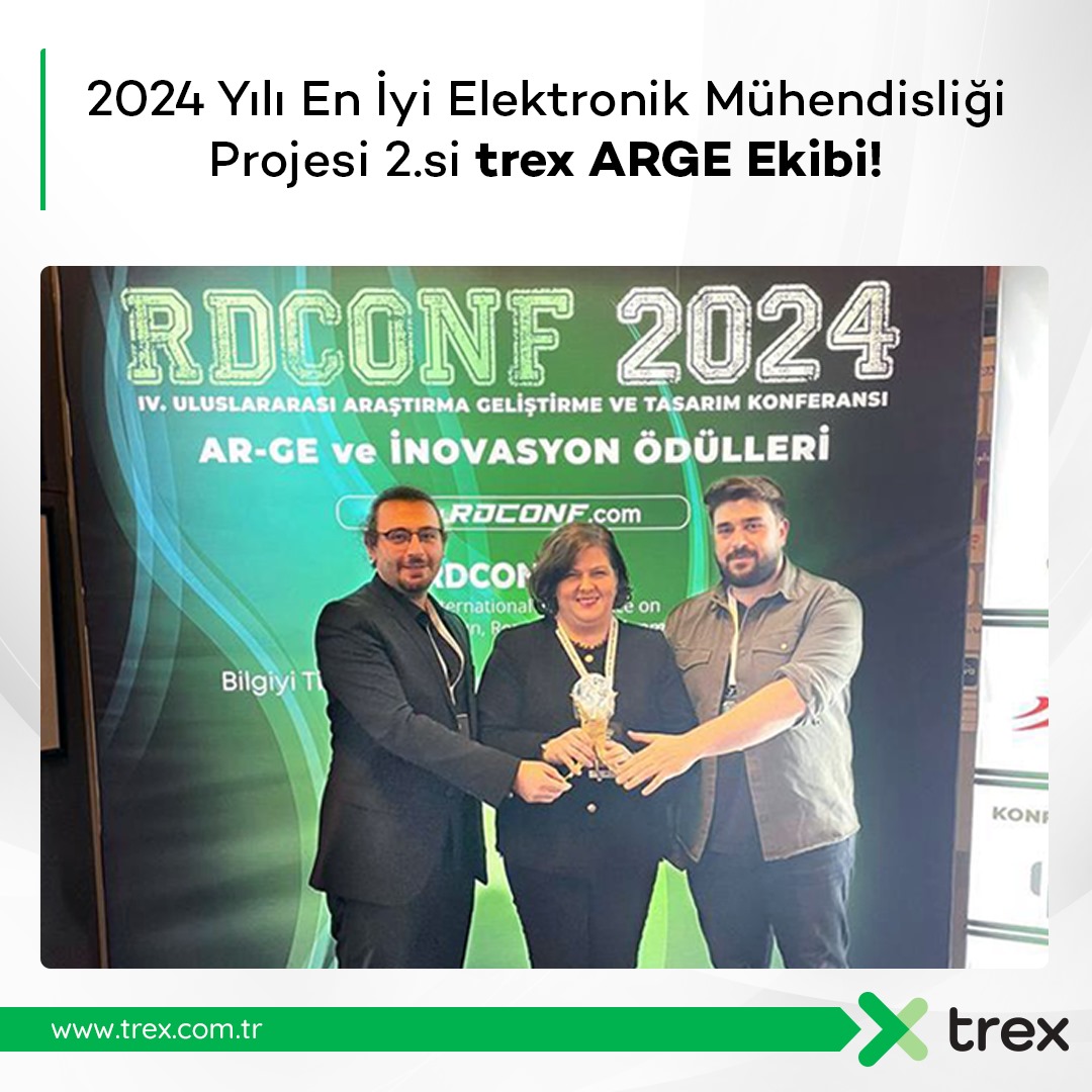 Uluslararası Araştırma Geliştirme ve Tasarım Konferansı (RDCONF) bu yıl dördüncü kez 19-20 Aralık 2024 tarihlerinde İstanbul Ticaret Odası Bilgiyi Ticarileştirme Merkezi’nde düzenlendi. Kongreye bu yıl da katılan trex “En İyi Elektrik Elektronik Mühendisliği Projesi” kategorisinde 2.’lik ödülüne layık görüldü.