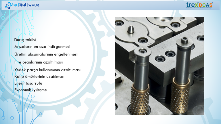 Kalıp başta olmak üzere tüm kritik ekipmanlar (kesici uçlar vb.) ID’leştirilerek üretim sahasında hangi makinede, hangi iş emrine çalışılıyor. Hangi operatör kalıbın takılı olduğu makinede çalıştı. Ne kadar süre kullanıldı. Hangi vardiyalarda hangi iş emirlerine çalışıldı. Datasheet’inde tavsiye edilen kullanım süresinin tamamlanmasına ne kadar kaldı. Planlı bakım yapılması gereklimi ve yapıldı mı? Tüm bunların takip edilip, yönetilip kayıt altına alınması ile ciddi maliyetleri olan kritik ekipmanlar kalıp kesici uç takımları vs. daha efektif kullanılabilmektedir.