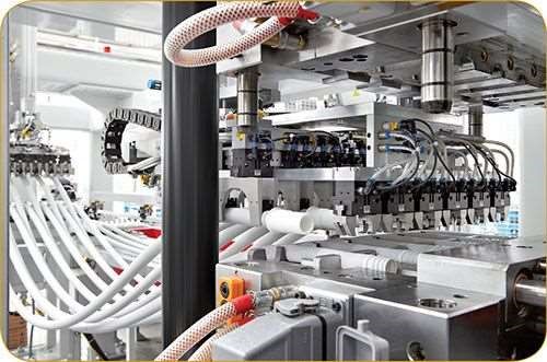 Bu ürünlere en iyi örnek şişelerdir. Ergimiş plastik boru şeklinde ocaktan akarken. Kalıbın arasına hapsedilir ve bir noktadan içine basınçlı hava verilerek kalıbın içinde şişirilir. Kalıp içinde soğuyan plastik kalıbın şeklini alır. MES çözümleri ile takip edilebilir.