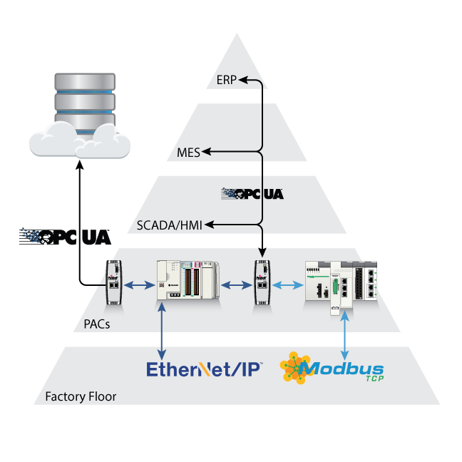 OPC Server: OPC sunucusu OPC standartına uymayan iletişim sistemini OPC standartına çeviren bir protokol çeviricisidir. Başta PLC’ler olmak üzere pek çok aygıt için OPC sunucuları (OPC Server) geliştirilmiştir.