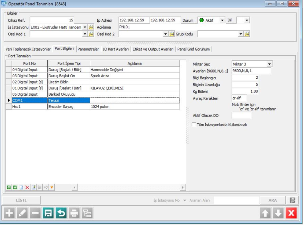 Makine üretim sayaç bilgisi veya üretim m/dk gibi cycle time zamanı görebileceğimiz veriler.
