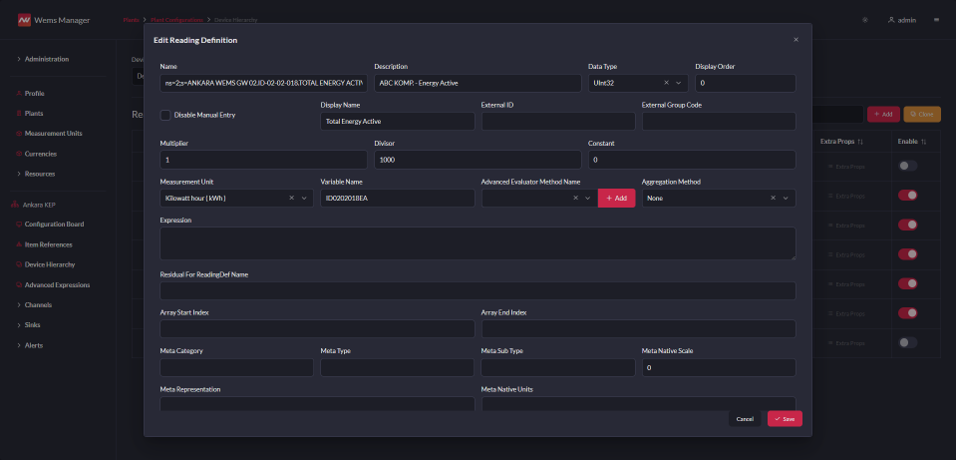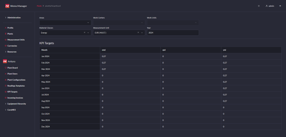 - Müşteriye özel entegrasyonlar ile üretim/depo yönetimi sistemlerinden üretim miktarlarının alınması ve üretim/enerji KPI hesaplayabilme